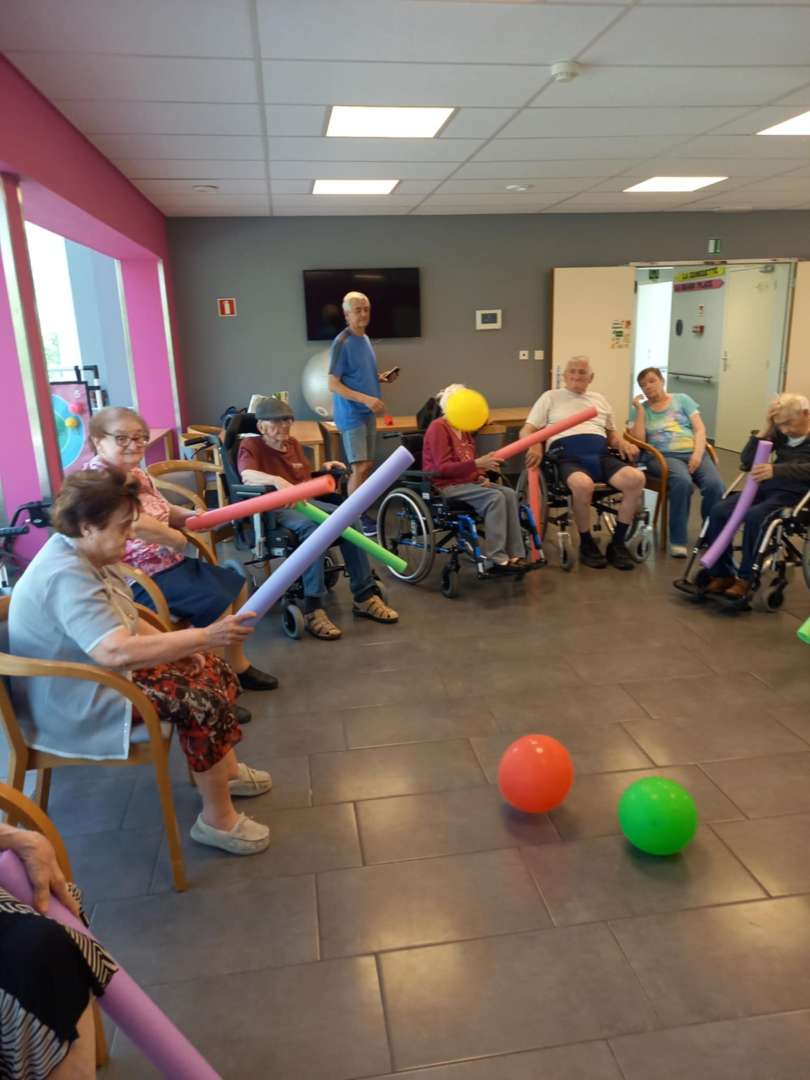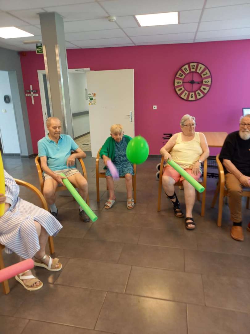 Ballons colorés, rires partagés et exercices adaptés ont rythmé cette séance. Ce type d’animation stimule la mobilité, encourage les échanges et apporte une énergie positive au quotidien.